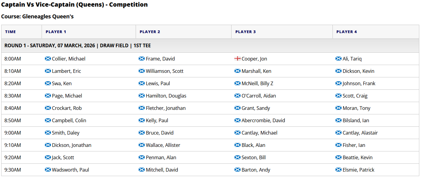 Captain vs Vice Captain Annual Match. Queen’s. Sat 7th March.