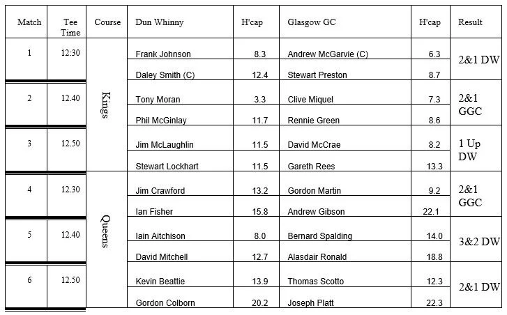 Dun Whinny GC vs Glasgow GC