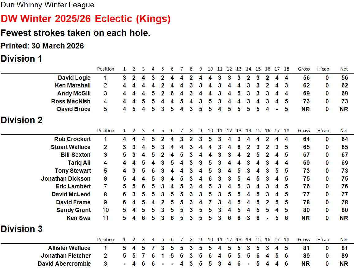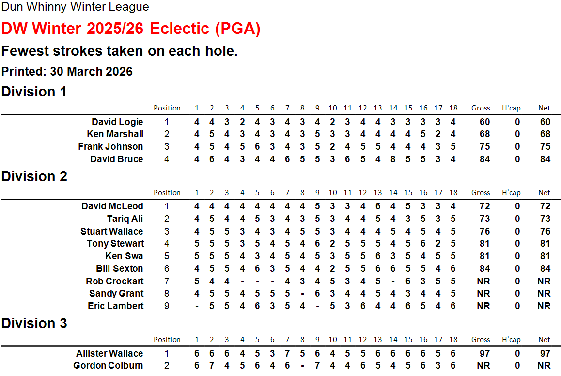 As the frost settles on the fairways, the competition is heating up across our Winter Eclectics. Here is how the leaderboards stand as we head into a crucial 24 hours: