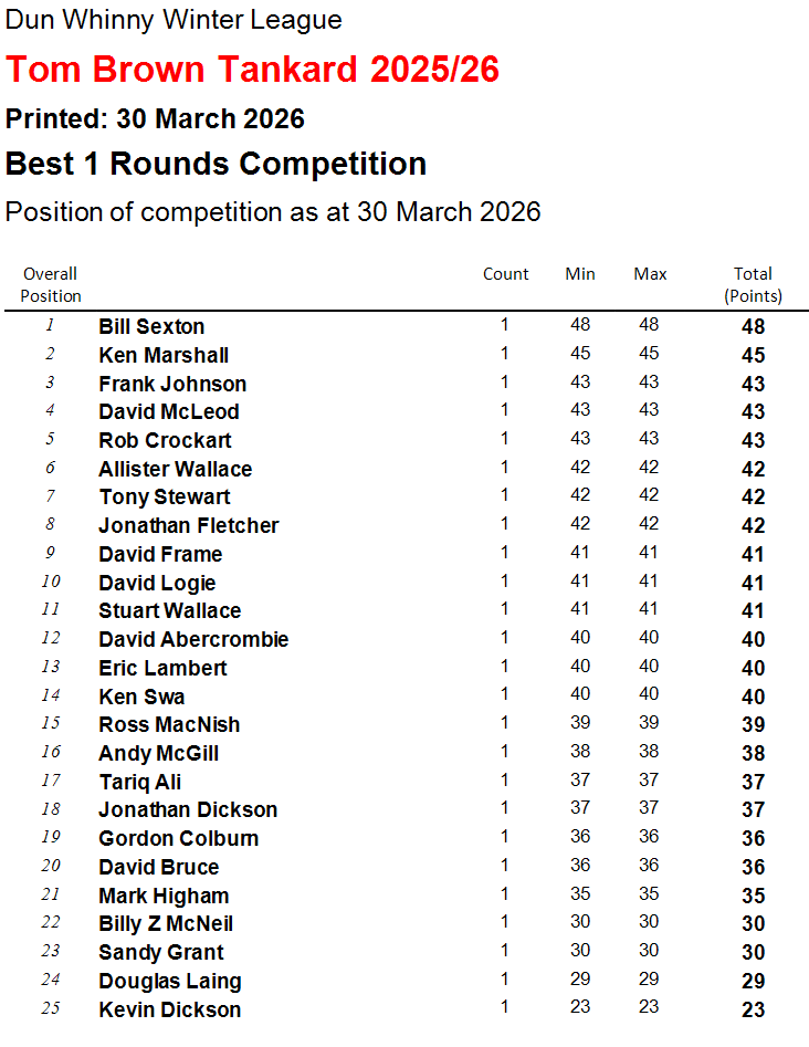 The race for the Tankard remains intense. Bill Sexton continues to hold the top spot, fueled by that truly amazing round of 48 points. It’s a formidable target that remains the one to beat.