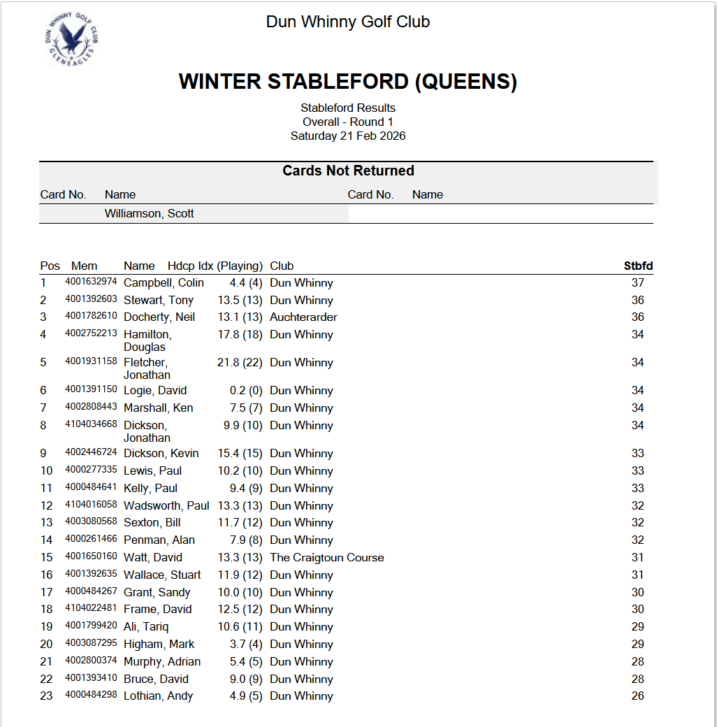 Result- Winter Stableford. Queen’s. Sat 21st Feb 2026. 10 Feb Written By Tariq Ali Result for Saturday is below. Tariq Ali